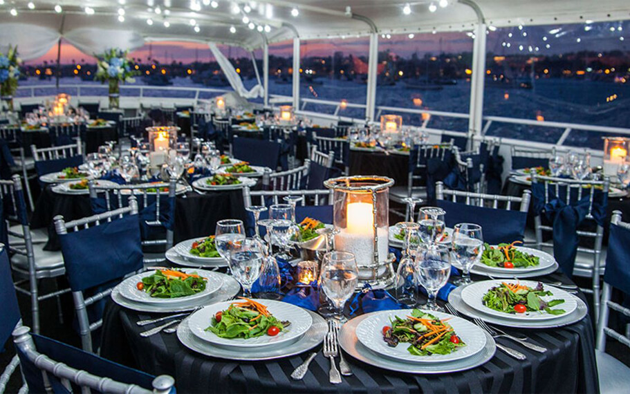 Want to take in the Newport Harbor views? The Icon offers a large bow, an aft deck, and walk-around decks. And there are also five VIP staterooms, including a bridal suite with individual climate control.